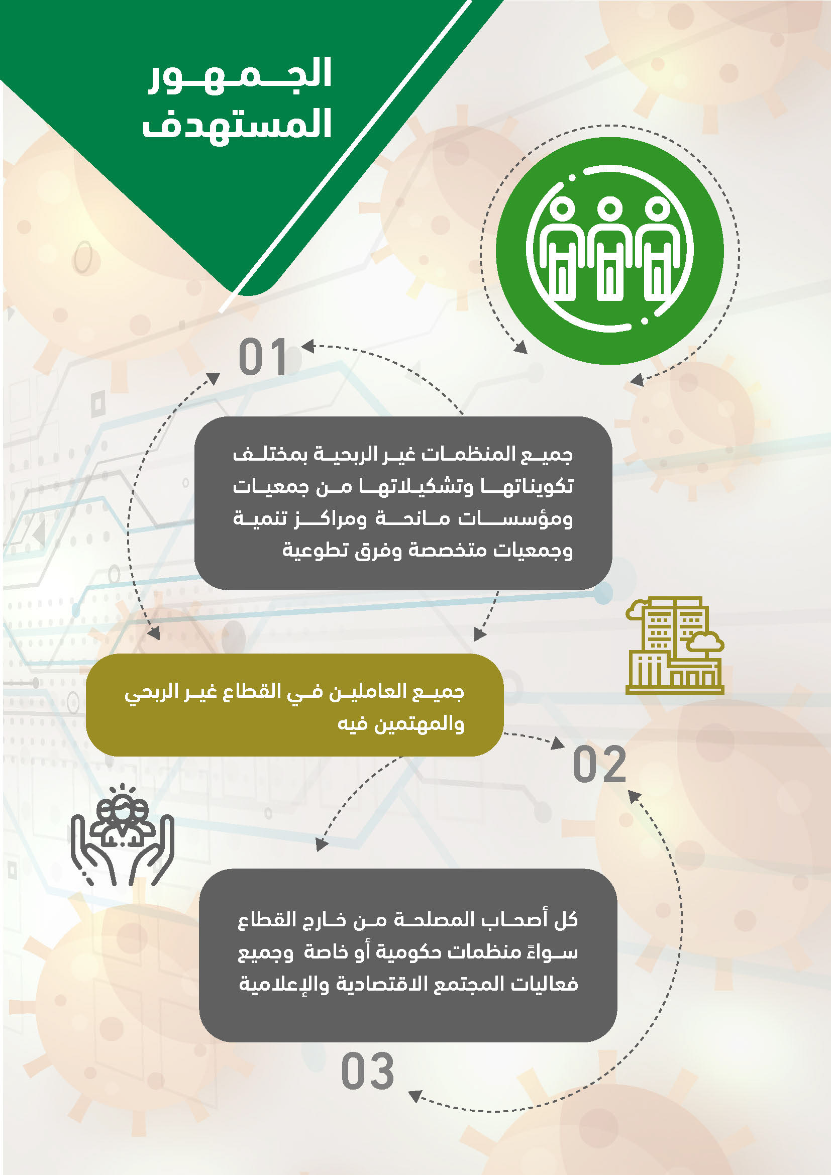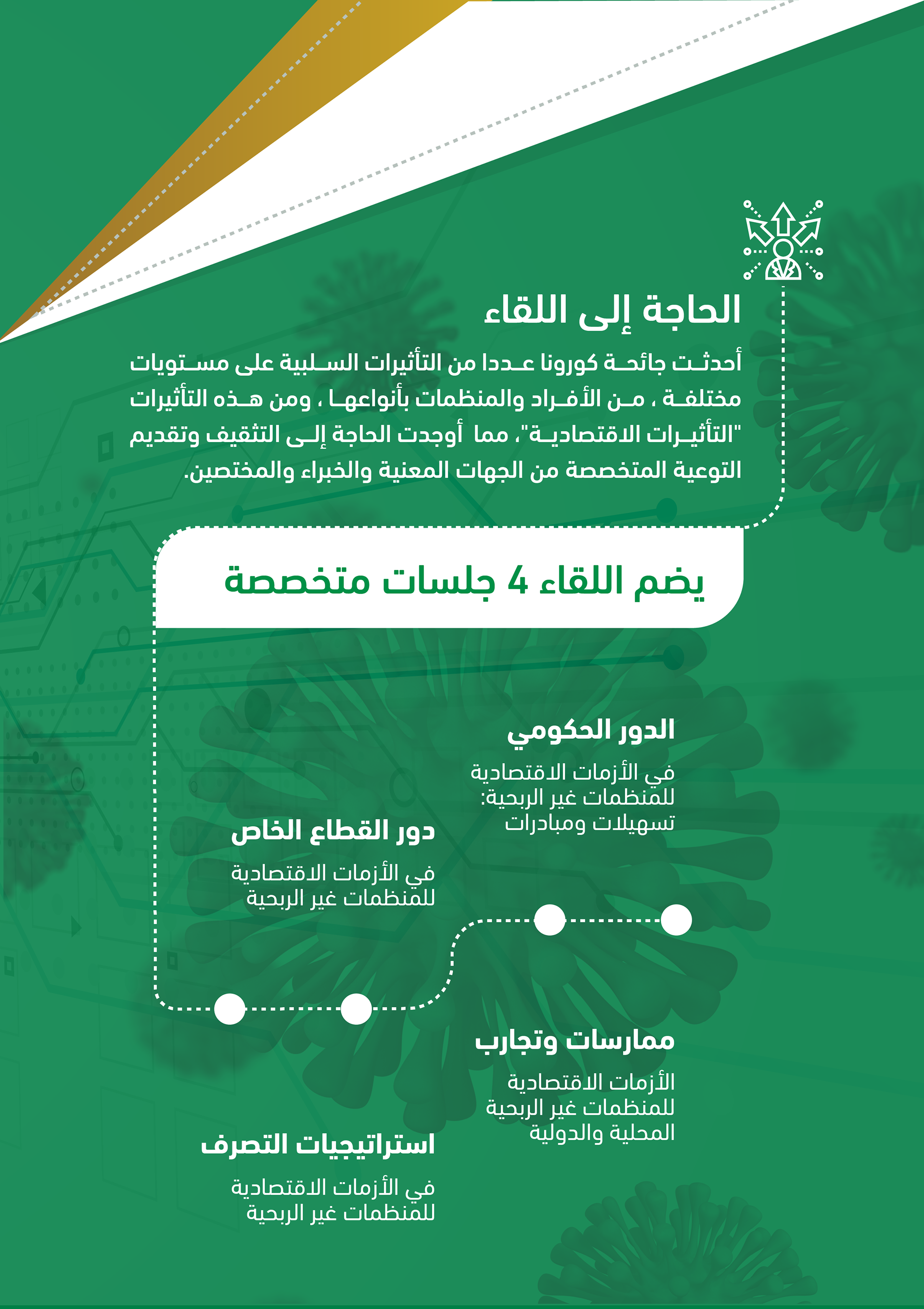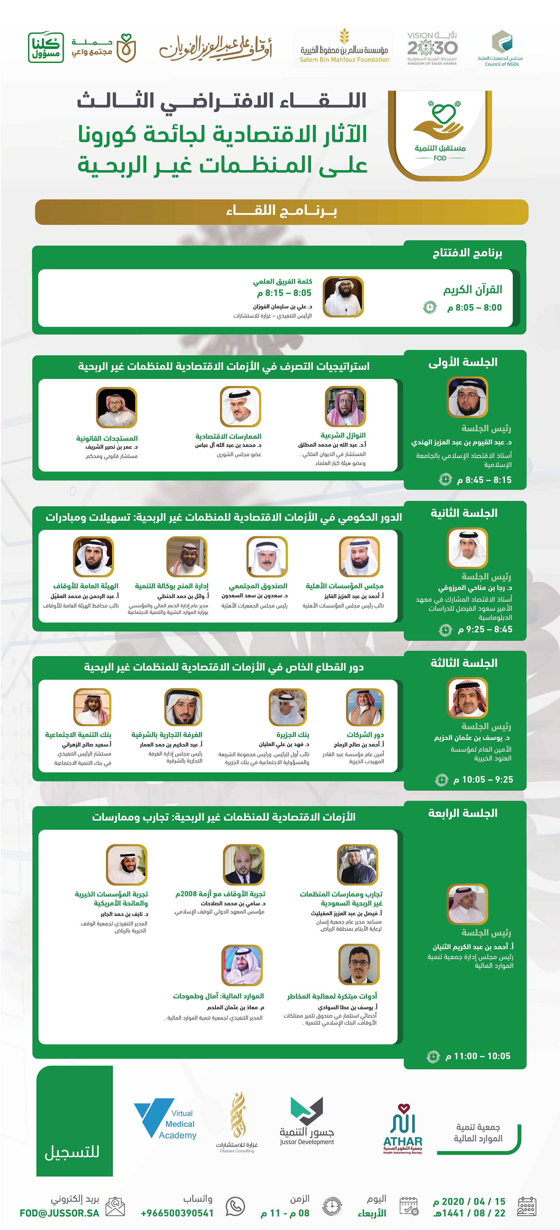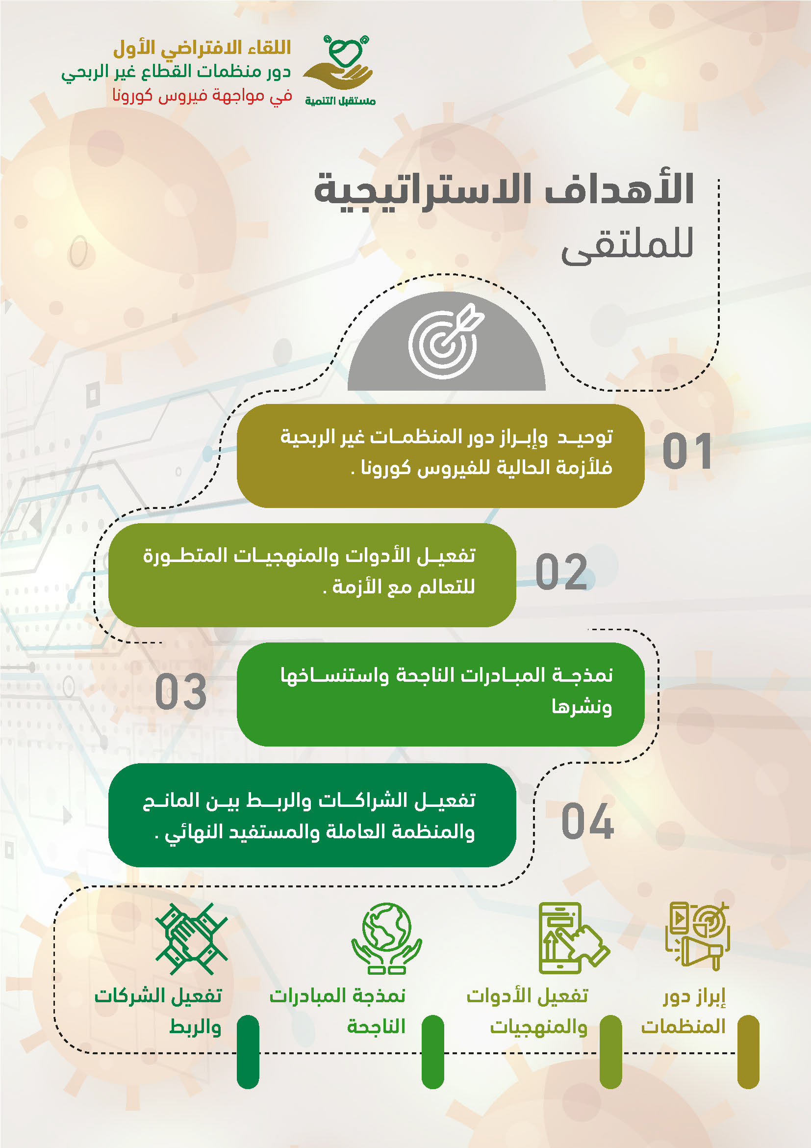 لقاء اليكتروني تم عن طريق برامج اجتماعات افتراضية وقد ضم نخبة من المستشارين والمتخصصين كما شمل عدد من الجهات المشاركة